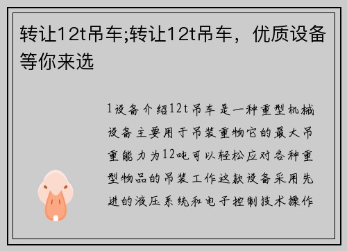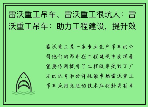 这款起重机非常稳定,负载能力强,而且操作界面非常直观,任何员工都能快速上手。对我们施工现场的帮助非常大,值得推荐!